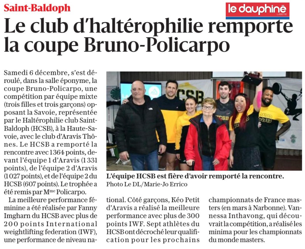 L’HC Saint-Baldoph organisait dan la coupe Bruno-Policarpo, compétition par équipe mixte opposant des équipes savoyardes, sur le format de la coupe de France avec 3 femmes et 3 hommes. Les locaux remporte la rencontre avec 1364 points, avec une petite avance sur les Hauts-Savoyards d’Aravis Hal-Fa (1331 points). Retrouvez tous les détails dans l’article ci-dessous du Dauphiné Libéré. Feuille de Match
