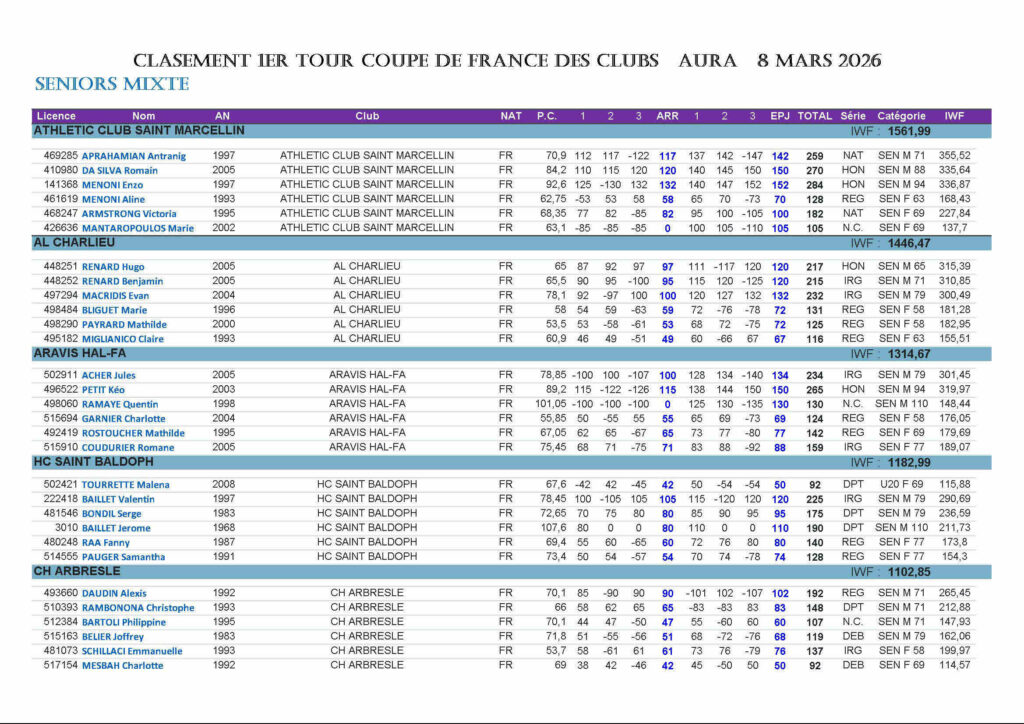 Chez les Seniors, tout comme pour le championnat régional l’AC Saint-Marcellin est le meilleur club de la ligue devant l’AL Charlieu. Aravis Hal-Fa est 3ème. On saura la semaine prochaine si c’est suffisant pour les isérois pour accèder à la finale.