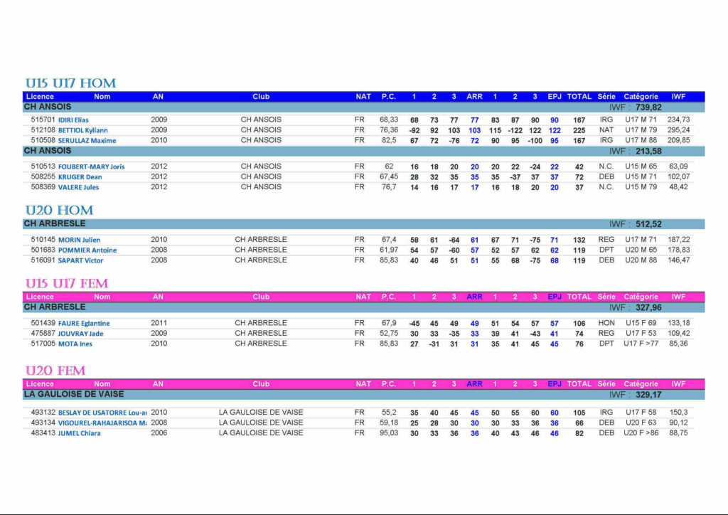 • L’équipe U17 H du CH Ansois, avec les records de France -79kg pour Kyliann Bettiol, qui réalise 740 points.